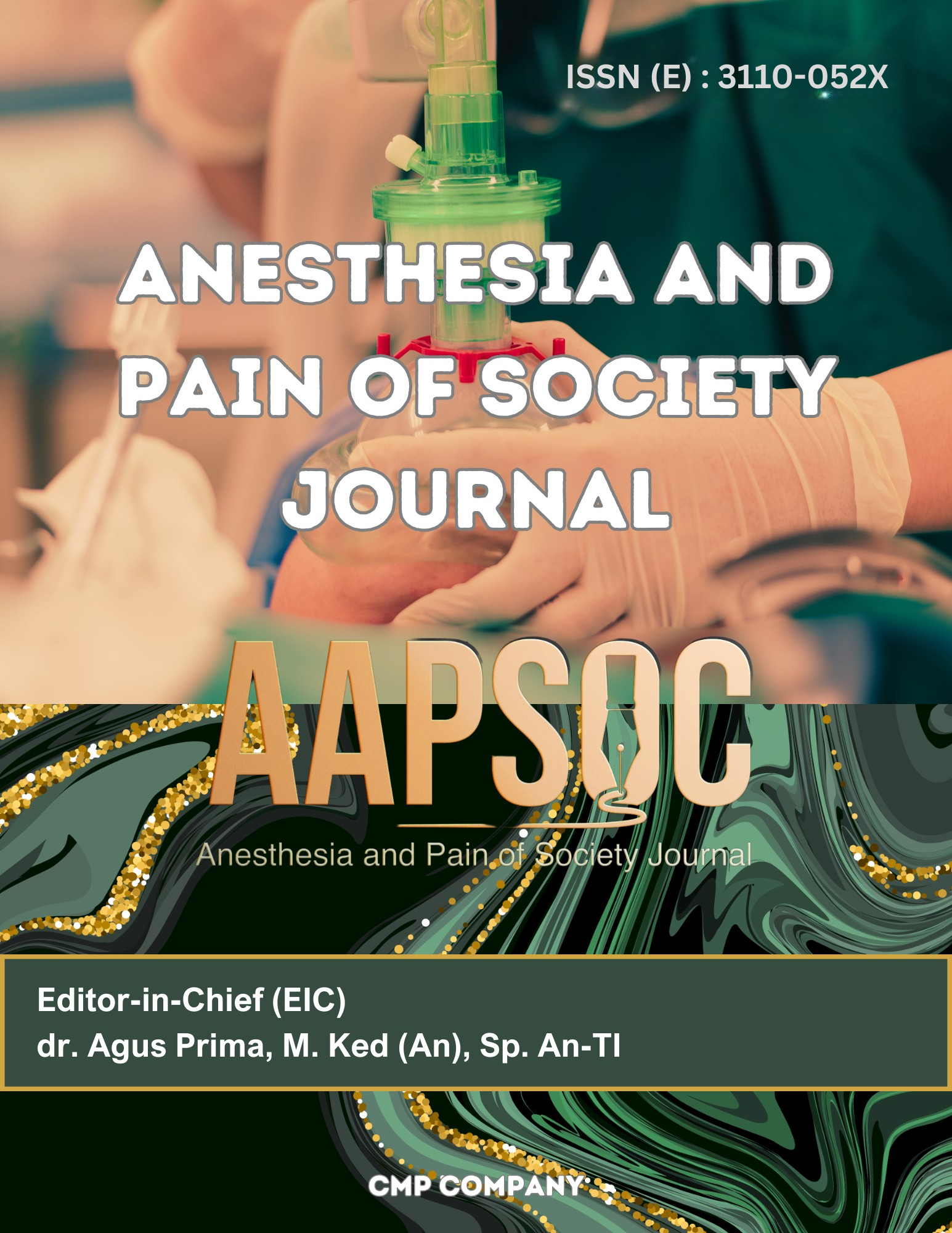 Anesthesia and Pain of Society Journal (AAPSOC) | ISSN (e): 3110-052X is an internationally recognized and comprehensive journal dedicated to advancing the field of anesthesia, critical care, and pain management. We publish high-quality, original research articles and reviews that encompass all aspects of general and regional anesthesia, intensive care, and pain therapy. Our journal is committed to advancing the understanding of anesthesia practices, improving patient safety, and enhancing the quality of clinical practices by providing an open platform for cutting-edge research and educational materials.